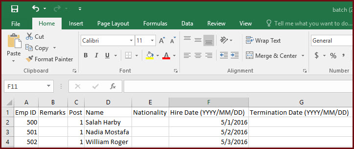 excel sheet columns that can be imported, via utilizing this batch. Thus, a