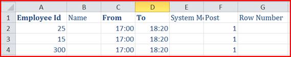 2. Prepare a relevant excel sheet with the following columns structure; ‘Emp ID’, ‘Name’, ‘From’ & ‘To’. Afterwards, you may specify the value of the ‘Post’ column; either with value (1) for posting or (0) for not posting.