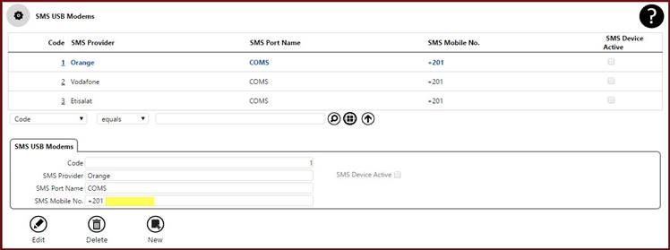 My Daily Work à System Setup à General Admin & Security à SMS USB Modems.