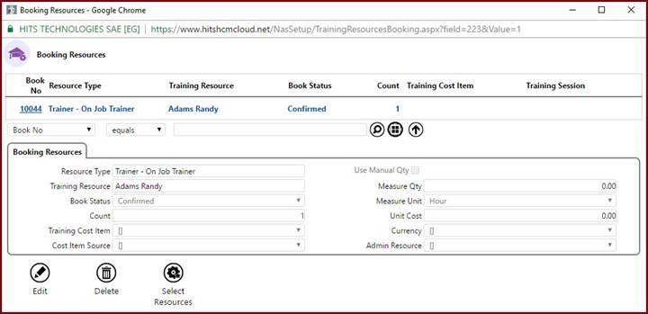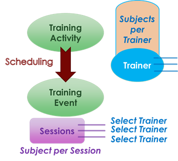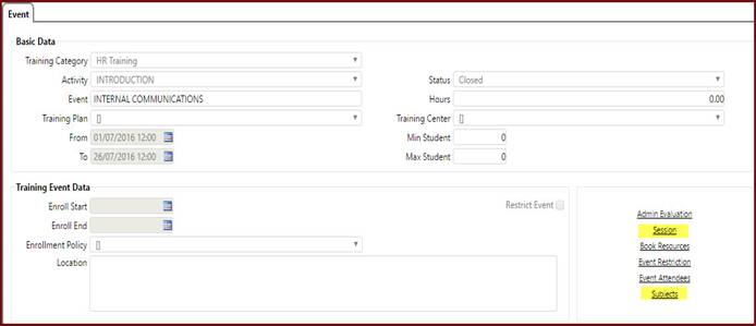 o Session: Enter session details; in terms of dates & timings. Select tackled Subject & assigned Trainer. Book certain resources per session, if necessary.