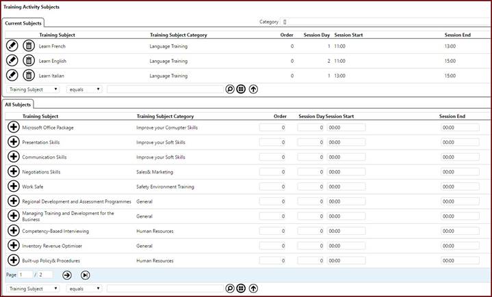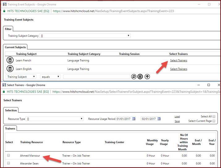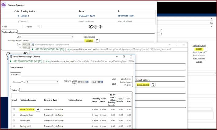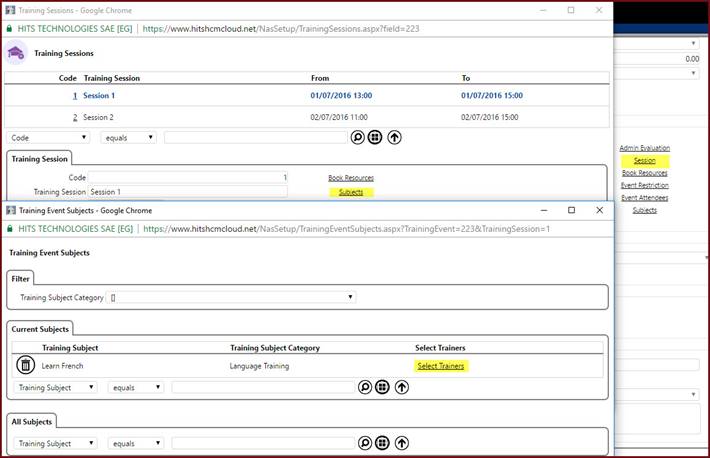 Trainer’ Link: After defining a session record, the relevant ‘Subject’