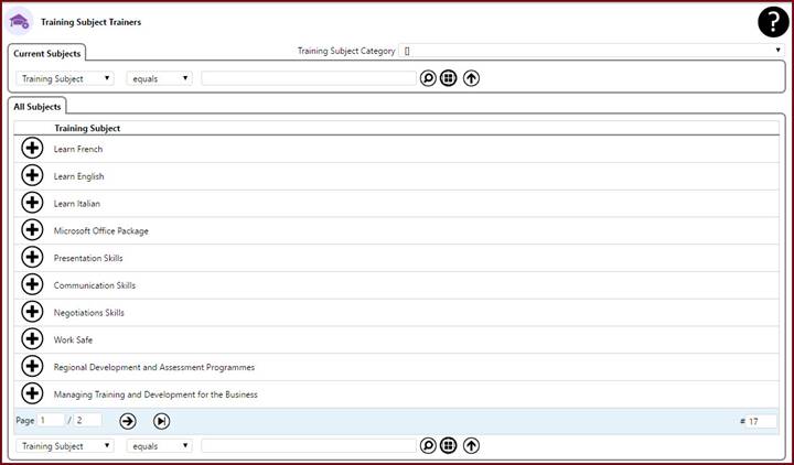 list, as per subjects’ setup link at ‘Trainers’ setup form; which dictates that