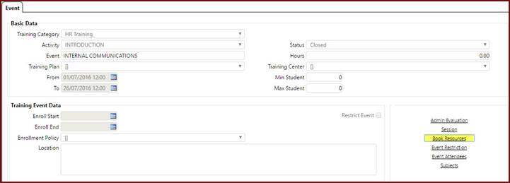 o Event Attendees: Select attendees who will attend this event, & enter various details relevant to their scoring, enrollment & cost. In addition, a user may enter batch or individual details for attendees, in terms of Cost Items, Training Evaluation, Appraisal Evaluation & Update Competencies.