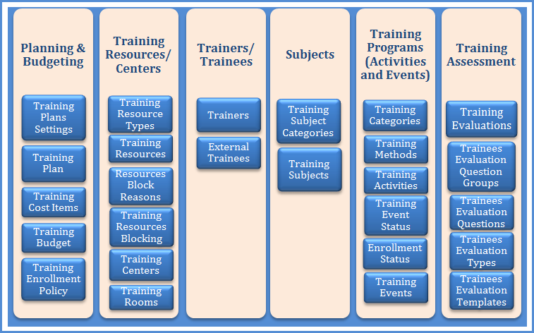 Training Setup links can be categorized as per the following pattern; as per business scope: